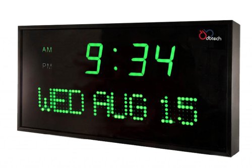 DBTech Big Oversized Digital Green LED Calendar Clock with Day and Date - Shelf or Wall Mount (12 inches - Green LED) Reviews